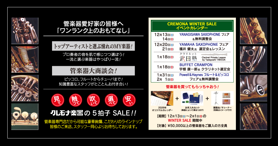 2026年1月18日(日) 宇根康一郎氏ビュッフェクランポン クラリネット特別選定会お申込みフォーム