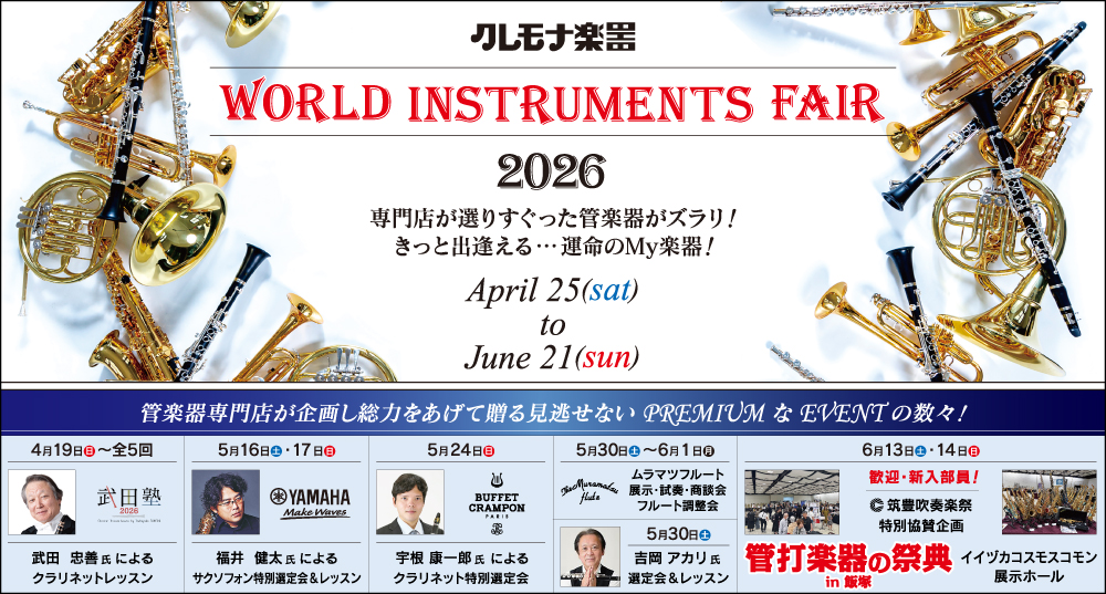 5/24(日) 宇根康一郎氏 クランポンクラリネット特別選定会お申込みはこちら