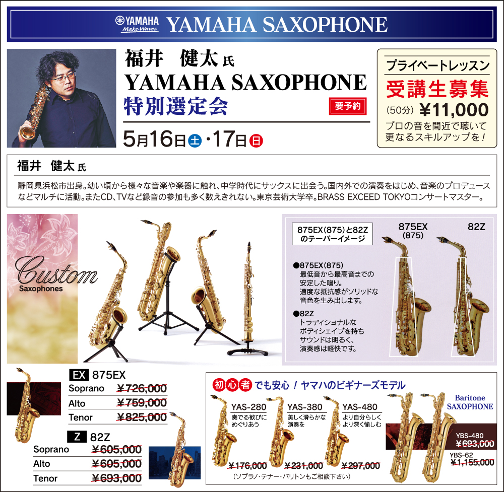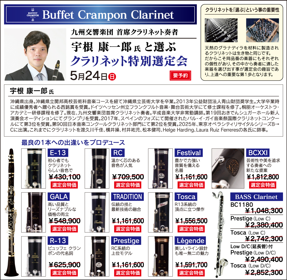 5/24(日) 宇根康一郎氏 クランポンクラリネット特別選定会お申込みはこちら