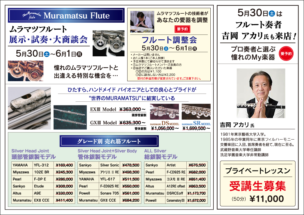 ムラマツフルート調整会の予約受付開始日などのご案内はこちらをご覧ください